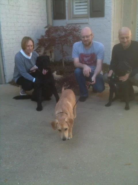 Not sure about the physics of the micro-burst energy torque of a 40 pound young dog on the arm of a mature 165 pound guy. Every few seconds, just as I think maybe he's got it, another leap-jerk perpendicular away and/or across my gait, great leaps forward, then slam on the brakes stops. Like the water incrementally heating up on the frog, the leash wrapped around my hand nooses up to tourniquet blood cut off to my bluing fingers. I tease...a bit. Long way to go, but today, our 3rd day out, I do see signs, small for sure, that he is learning.